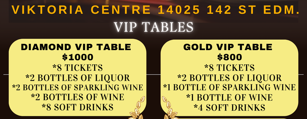 Tables VIP (8 pers.) | 600 $, 700 $, 800 $ ou 1000 $ | Repas et le pacquet VIP inclus. |