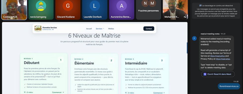 During a one-hour session, Ms. Alphonsine presented the objectives of her project and guided participants through an interactive tour of the platform, allowing community members present at Pont Cultural Bridge, as well as those joining online via Google Meet, to discover the various resources offered.